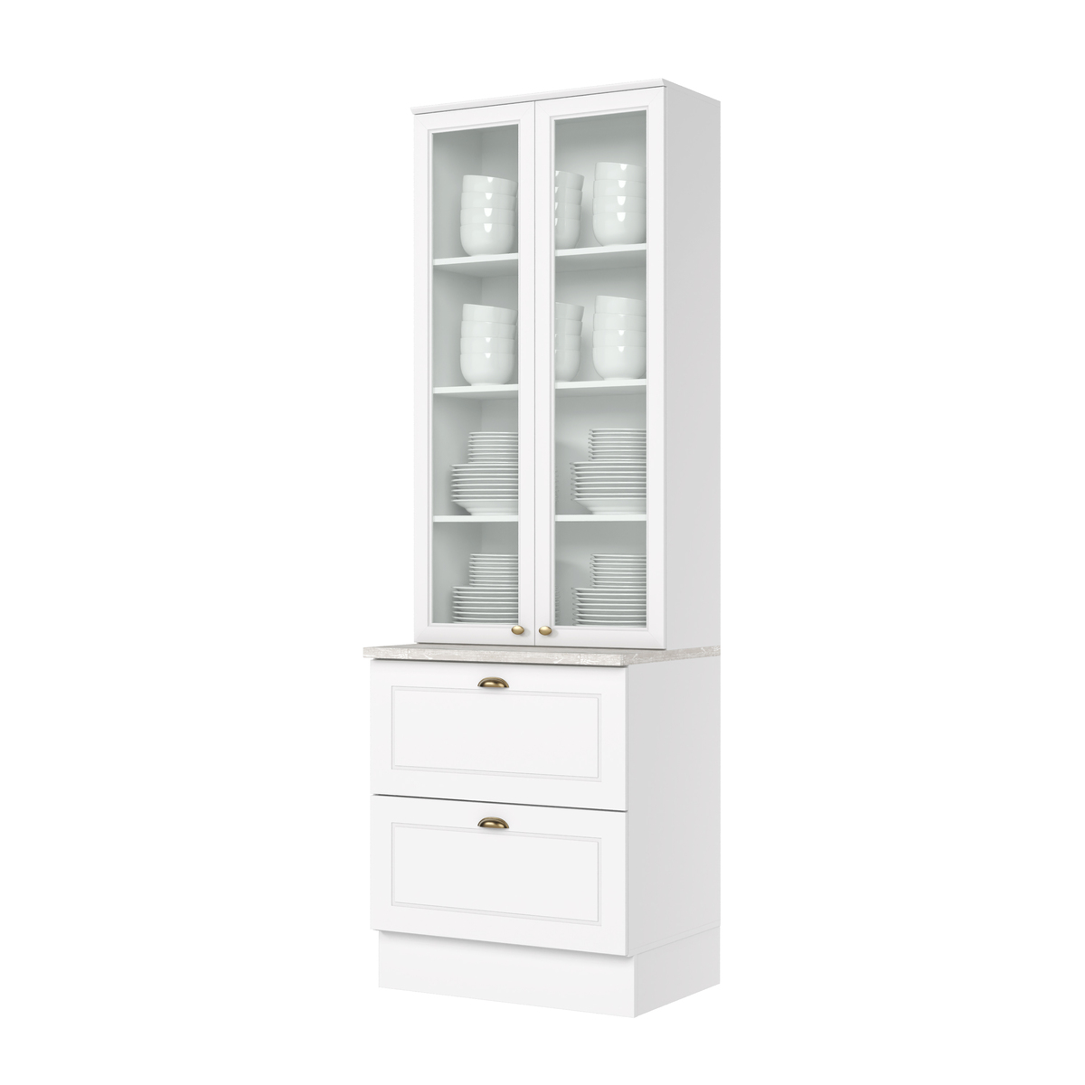 Esta cristaleira faz parte de uma cozinha modulada. Você pode complementar seu ambiente escolhendo entre diversos outros módulos disponíveis, como aéreos, torres e balcões adicionais — tudo para montar a cozinha dos seus sonhos com praticidade e estilo.