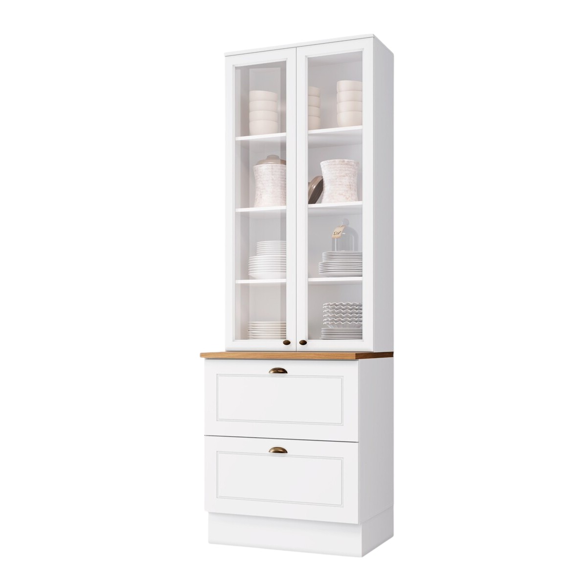 Com design imponente e acabamento refinado, esta cristaleira é perfeita para compor cozinhas no estilo americano. As duas portas com vidro trazem leveza e sofisticação ao ambiente, permitindo expor louças e utensílios com elegância. Já as gavetas oferecem praticidade no armazenamento do dia a dia.
