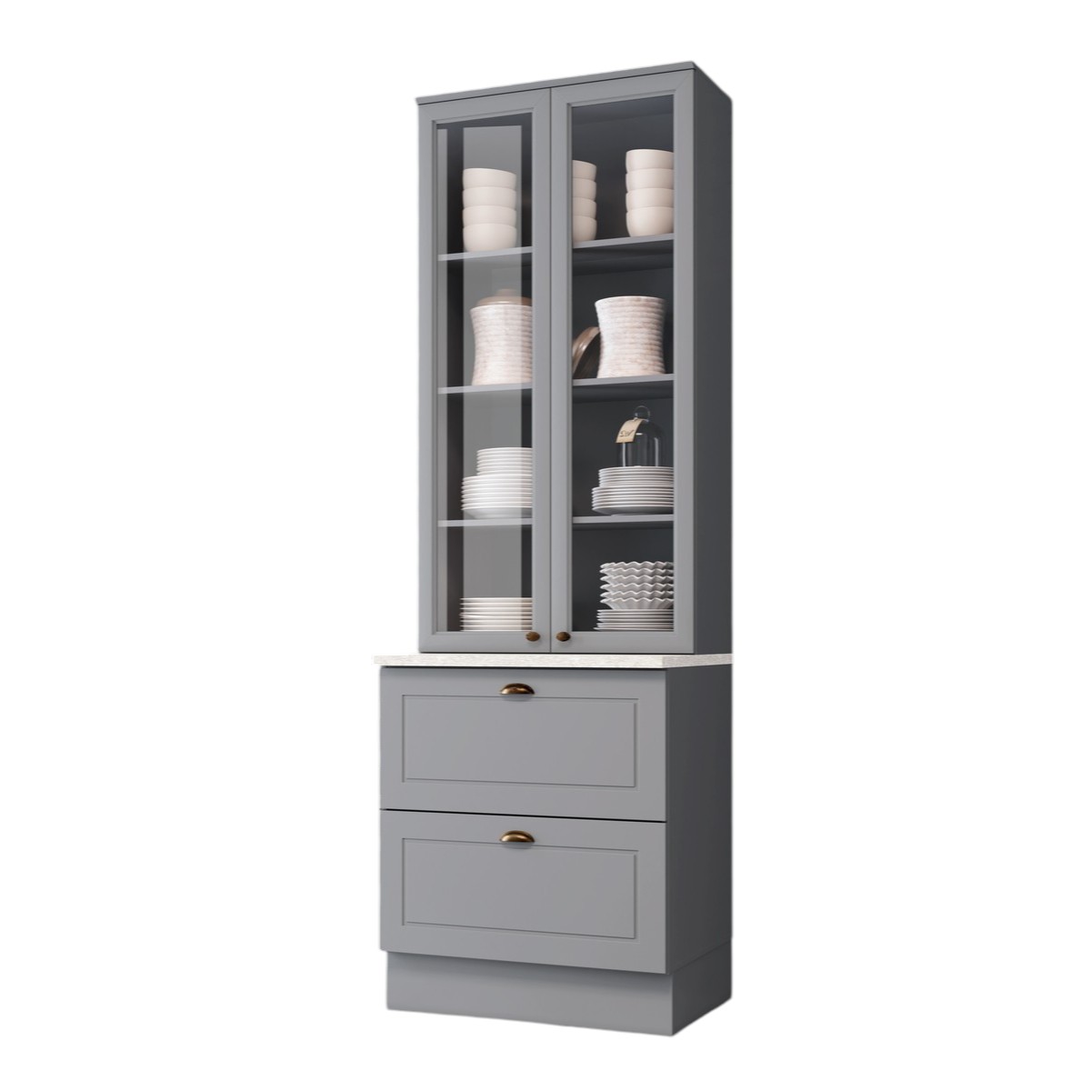 Esta cristaleira faz parte de uma cozinha modulada. Você pode complementar seu ambiente escolhendo entre diversos outros módulos disponíveis, como aéreos, torres e balcões adicionais — tudo para montar a cozinha dos seus sonhos com praticidade e estilo.