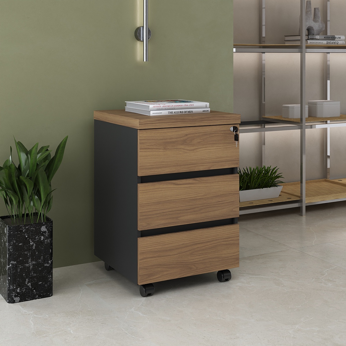 O gaveteiro possui rodízios resistentes, que permitem fácil mobilidade no ambiente sem esforço, mesmo quando totalmente carregado. Seu design compacto se adapta perfeitamente a diferentes espaços, seja sob mesas ou ao lado da estação de trabalho.