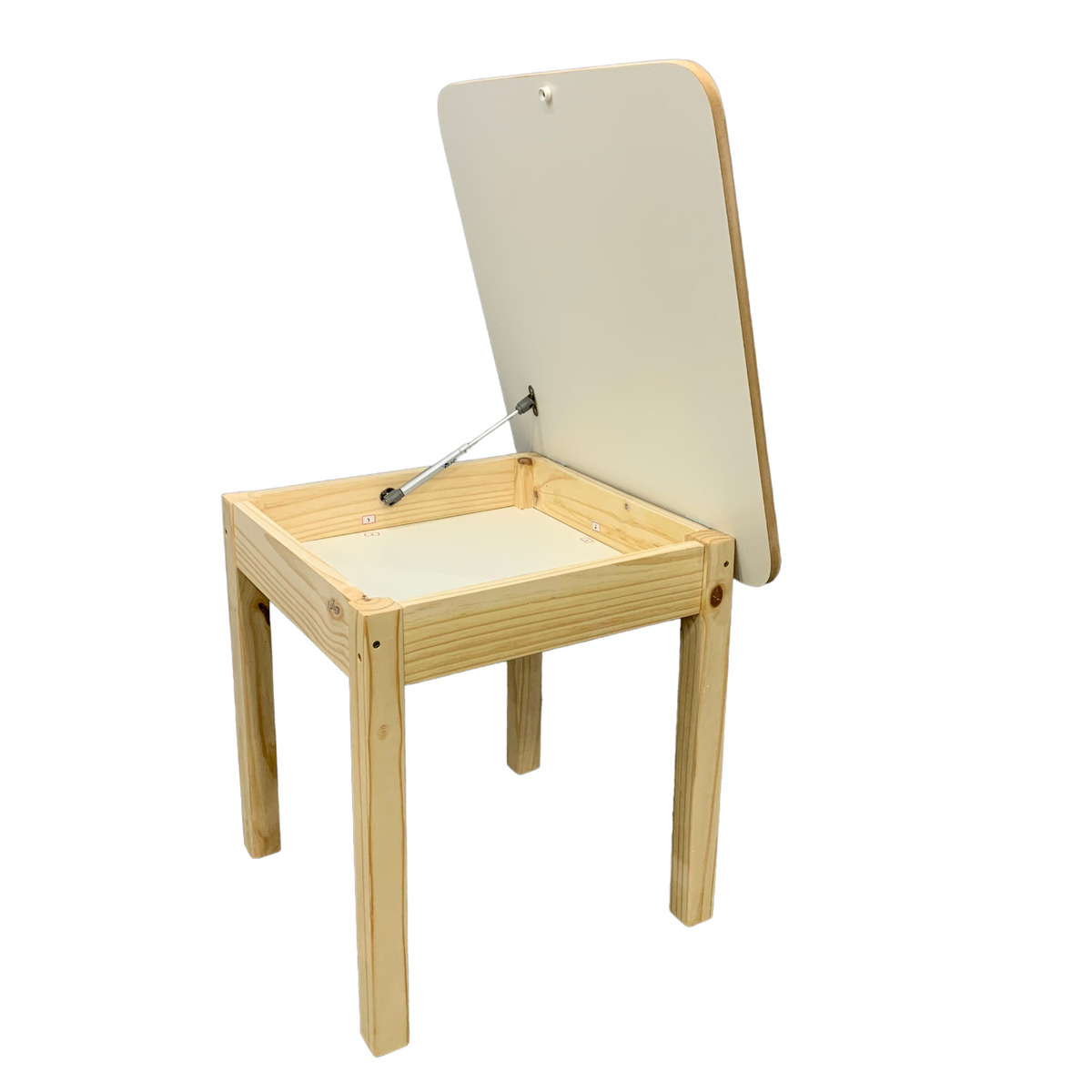 Transforme o cantinho dos pequenos em um espaço encantador e funcional com nossa mesa baú infantil! Perfeita para brincadeiras, estudos ou momentos de criatividade, esta mesa é fabricada com madeira maciça de Pinus e MDF.