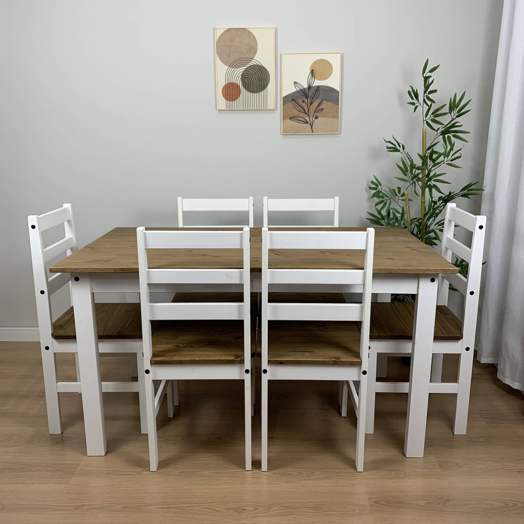 Transforme sua sala de jantar com o charme e a durabilidade do nosso elegante conjunto de mesa com 6 cadeiras em madeira maciça pinus. Feito para quem valoriza o estilo clássico e a qualidade, este conjunto é ideal para criar um ambiente acolhedor e sofisticado.