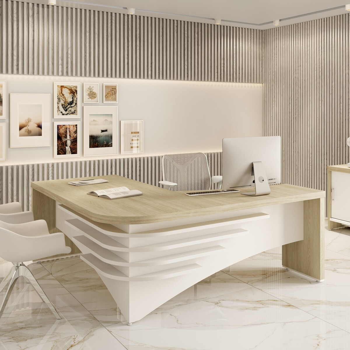 Decore e organize seu escritório para maior produtividade com a Mesa Diretor, que possui design moderno e arrojado, deixando o ambiente sofisticado e requintado! Com estrutura em MDP, e partes em Tamburato de 50mm de espessura, o móvel é robusto e de alta qualidade, o que garante sofisticação a qualquer ambiente. Detalhes curvos na parte externa garantem elegância e um design único e contemporâneo ao produto.