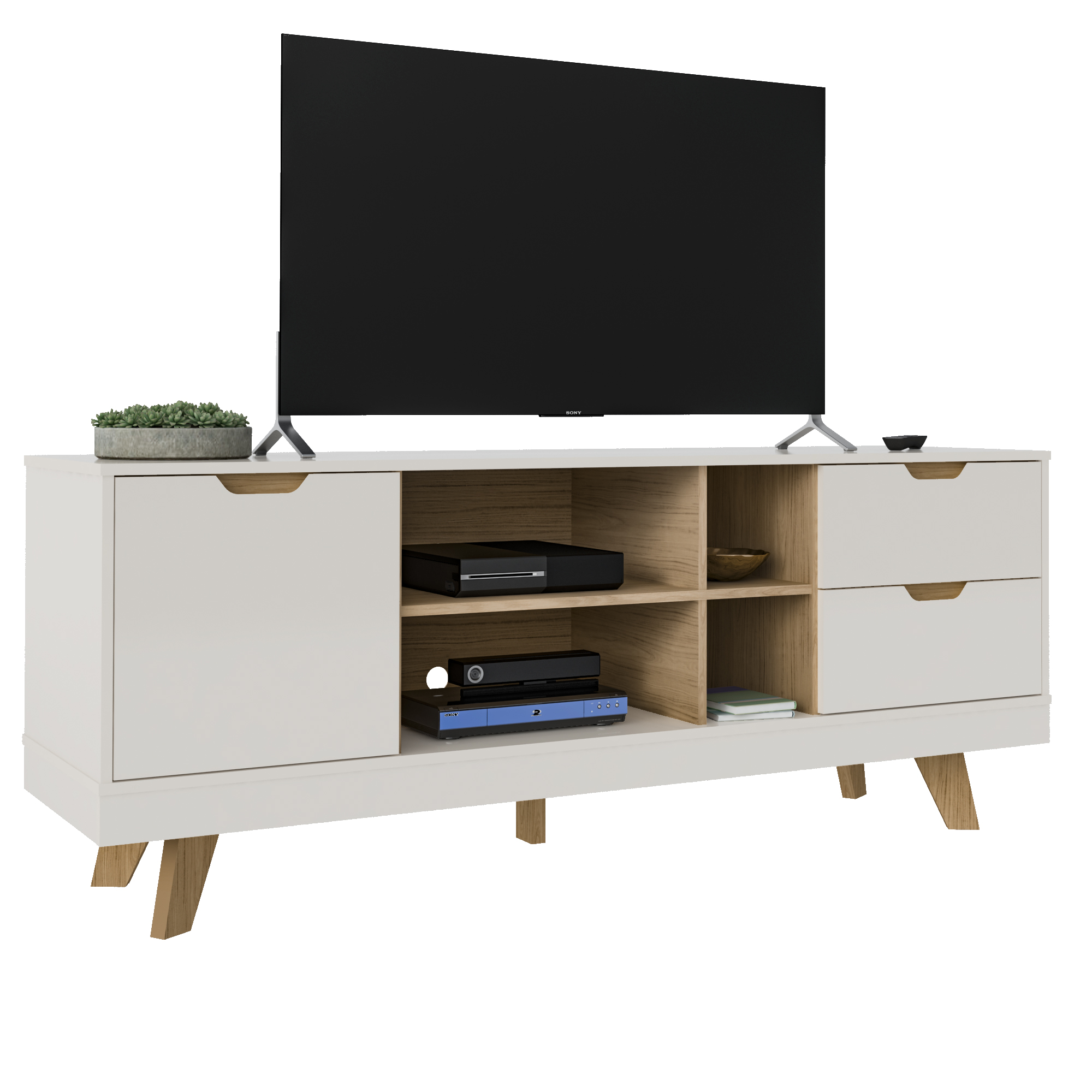 Encante-se com o elegante Rack Michigan, a peça-chave da organização e decoração da sua sala! Ele é perfeito para trazer a sofisticação e leveza que a sua casa merece, pois possui traços leves e design clean. Sua harmônica combinação de cores entre o amadeirado e o suave Off White tornam o móvel delicado e elegante. Comporta com segurança sua TV e todos os equipamentos eletrônicos necessários, além de oferecer muito espaço interno para armazenamento. Você vai amar a elegância e funcionalidade deste produto Artely!