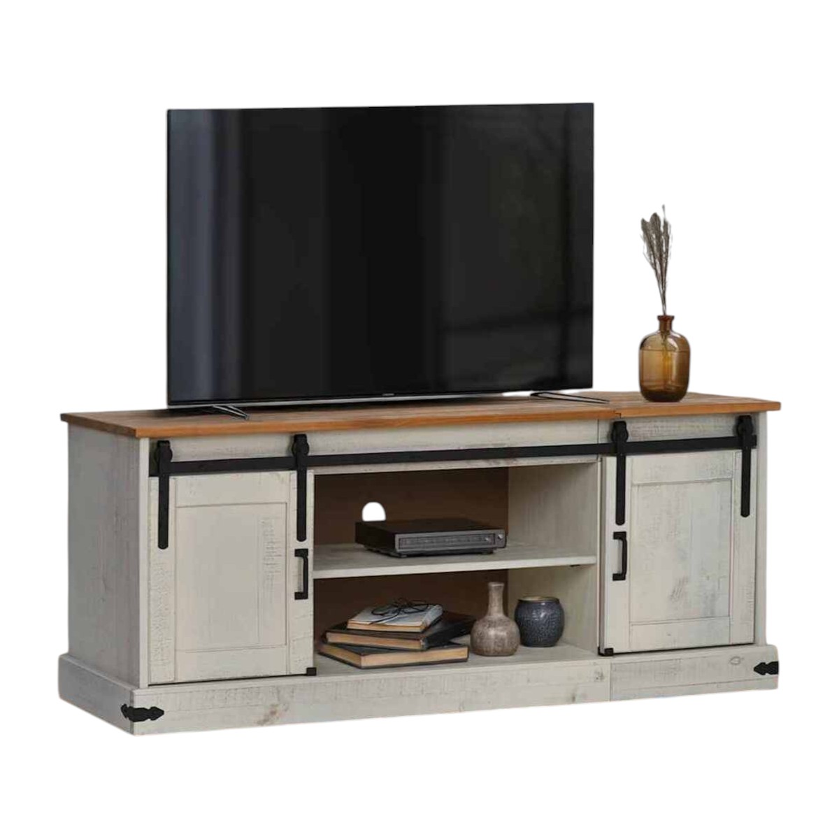 Transforme seu ambiente com o Rack em Madeira Maciça Pinus, que combina funcionalidade e design rústico. Com 2 portas para armazenamento e uma prateleira central, ele oferece praticidade e estilo. Seu acabamento em pintura estilo demolição traz um toque acolhedor e sofisticado, enquanto a madeira maciça garante durabilidade.